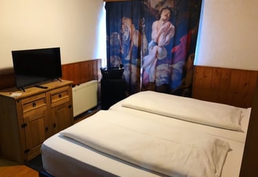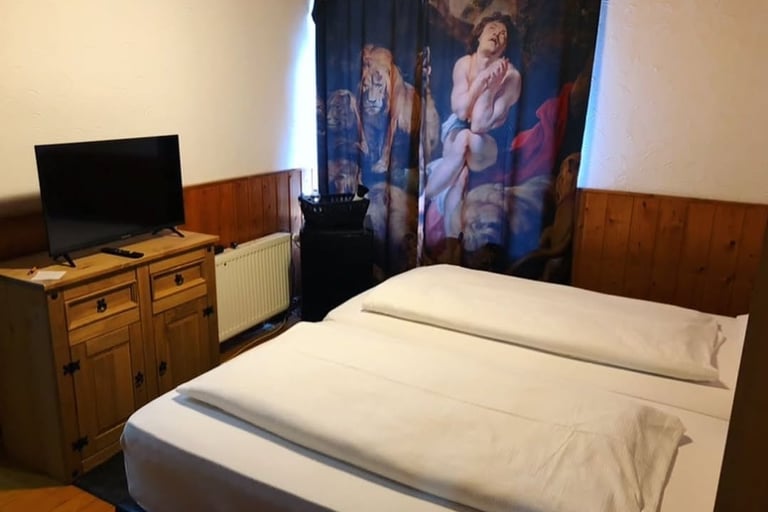 Das Doppelzimmer verfügt über Teppichboden, Heizung sowie ein eigenes Bad mit Dusche. Das Doppelzimmer verfügt über schallisolierte Wände, einen Kleiderschrank, Parkettböden, einen Flachbild-TV mit Streaming-Diensten sowie einen Blick auf die ruhige Straße. Die Einheit verfügt über 1 Bett.